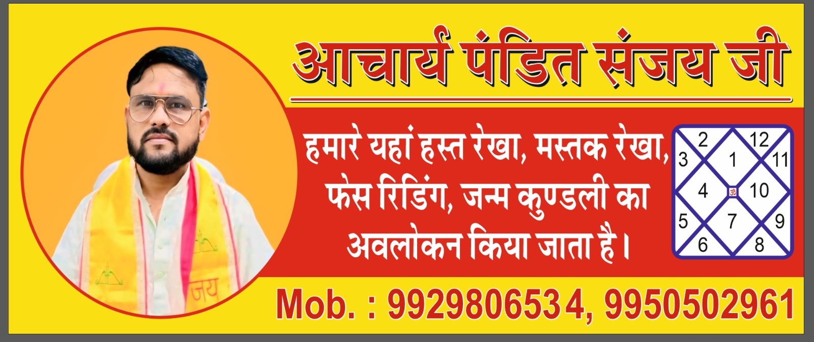 Acharya Pandit Sanjay Ji is a renowned name in Jaipur for authentic and insightful astrological guidance. With decades of experience in the sacred sciences of Hast Rekha (Palmistry), Mastak Rekha (Forehead Lines), and Janam Kundli (Birth Chart Analysis), Pandit Ji has helped countless individuals find clarity, direction, and peace in their lives. Our practice is rooted in traditional Vedic wisdom, offering personalized consultations that decode the cosmic blueprint of your destiny. Whether you're seeking answers about career, marriage, health, or spiritual growth, our readings are designed to illuminate your path with precision and compassion. At Acharya Pandit Sanjay Ji’s center, we believe that every individual carries a unique karmic imprint. Through the study of palm lines, forehead markings, and birth charts, we reveal the hidden patterns that shape your journey. Our approach is both spiritual and practical, empowering you to make informed decisions aligned with your true self. Located in the heart of Jaipur, we welcome seekers from all walks of life. Experience the transformative power of ancient astrology with a trusted guide who blends tradition with intuition.